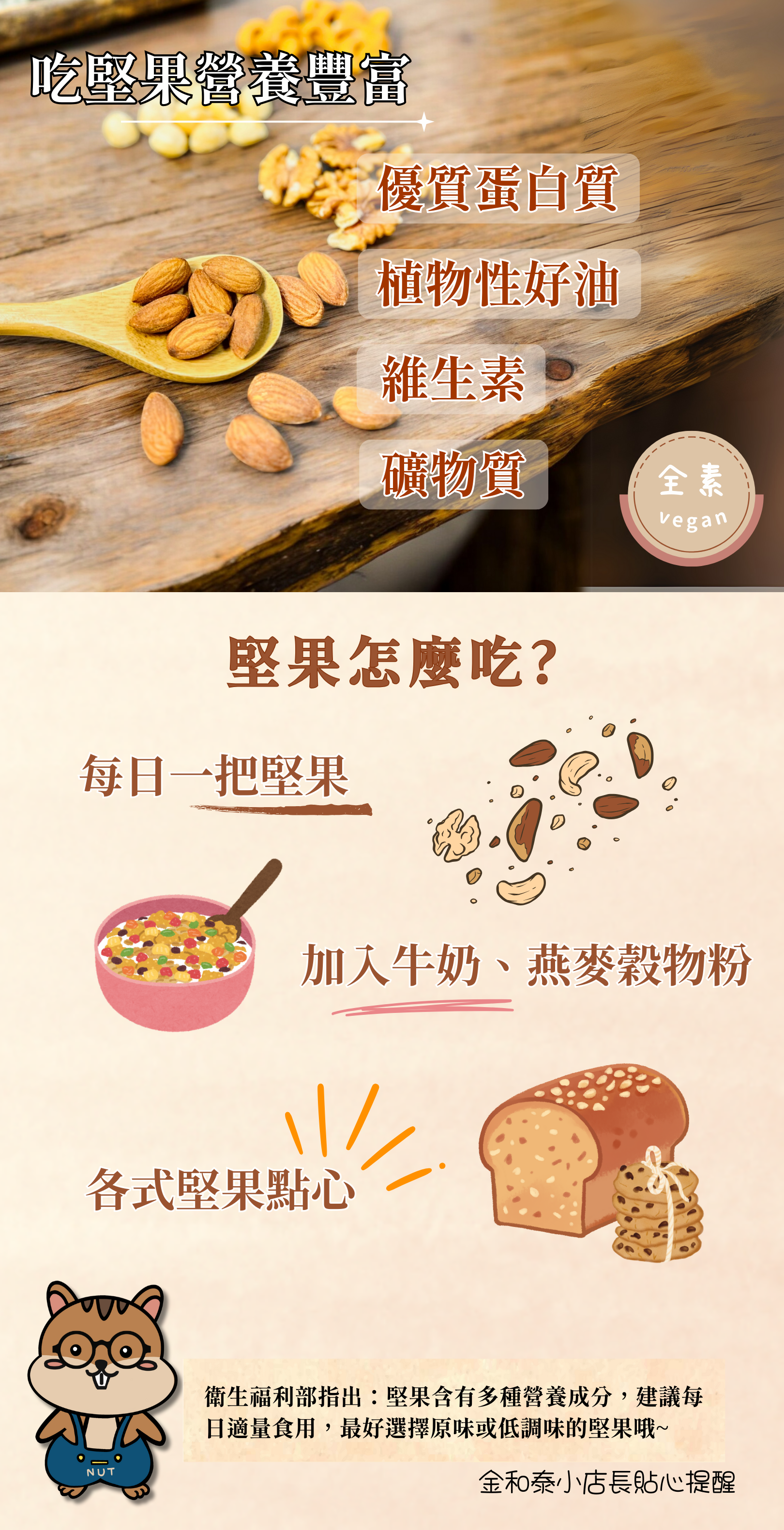 腰果、核桃、杏仁果、胡桃、夏威夷果完美搭配,均衡各式堅果的營養。